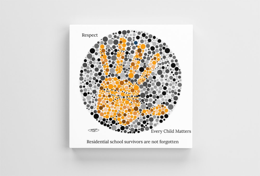 a 12' x 12" canvas print of the orange child's hand representing those indigenous children that endured or died in US and Canadian residential schools.