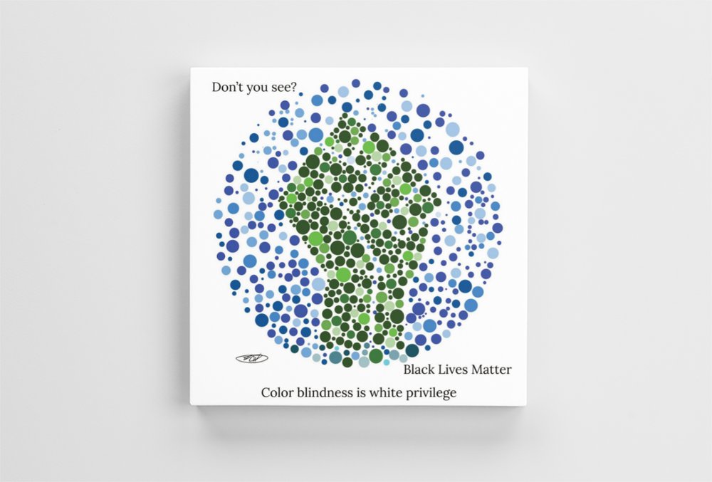 12" x 12" Canvas print of BLM Fist. "Don't you see? Color blindness is white privilege"