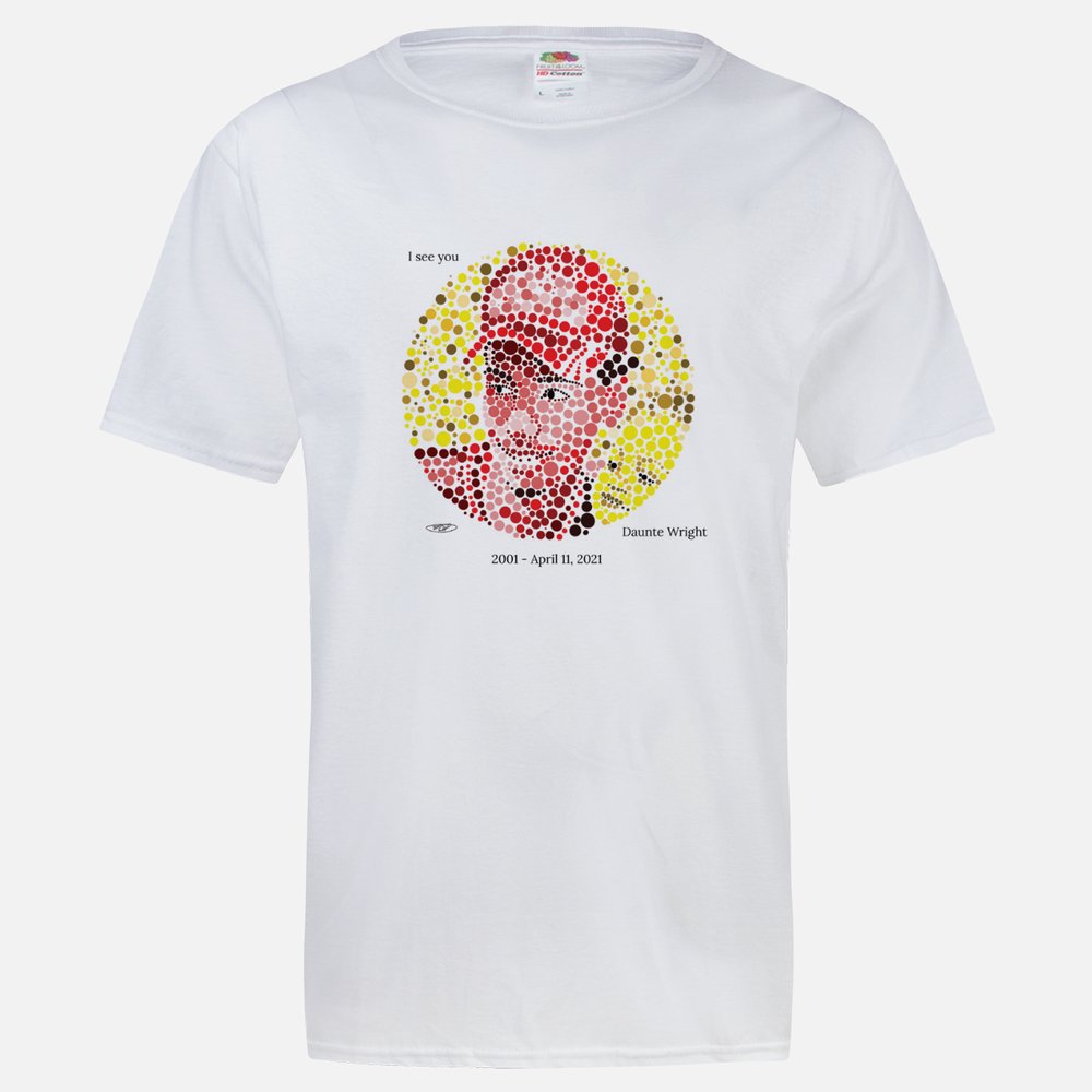 Men's T-Shirt with Daunte Wright's portrait on the front and the BLM Mosaic on the back