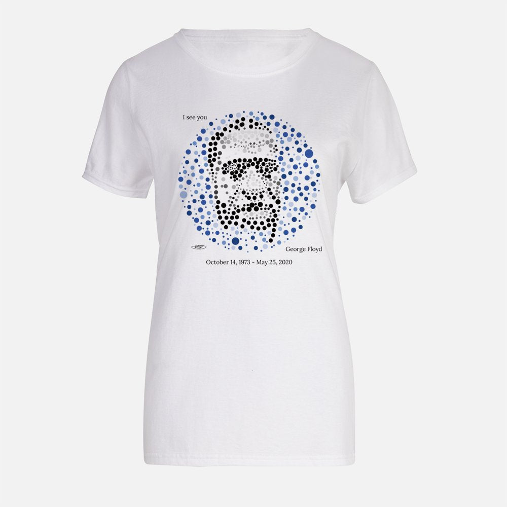 Women's tapered t-shirt with George Floyd's portrait on the front and the BLM Mosaic on the back