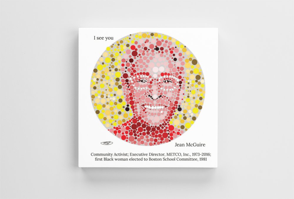 a 12' x 12" canvas print of community activist, Jean McGuire's portrait. Profits of all sales will go to METCO, Inc. towards a student scholarship fund.