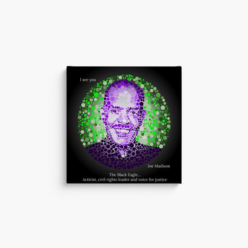 a 12" x 12" canvas print of the Joe Madison portrait.