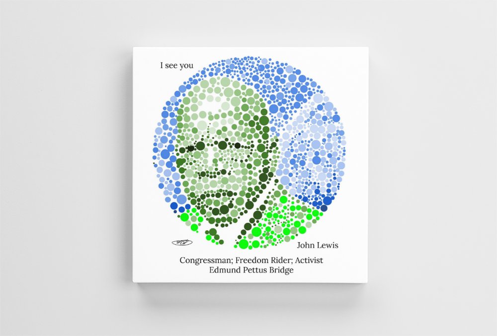 a 12' x 12" canvas print of the John Lewis in front of the Edmund Petus Bridge portrait