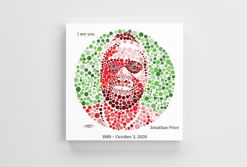 a 12" x 12" canvas print of the Jonathan Price portrait.