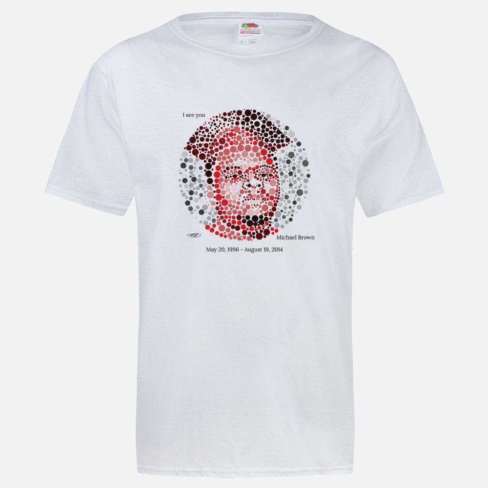 Men's T-Shirt with Michael Brown's portrait on the front and the BLM Mosaic on the back