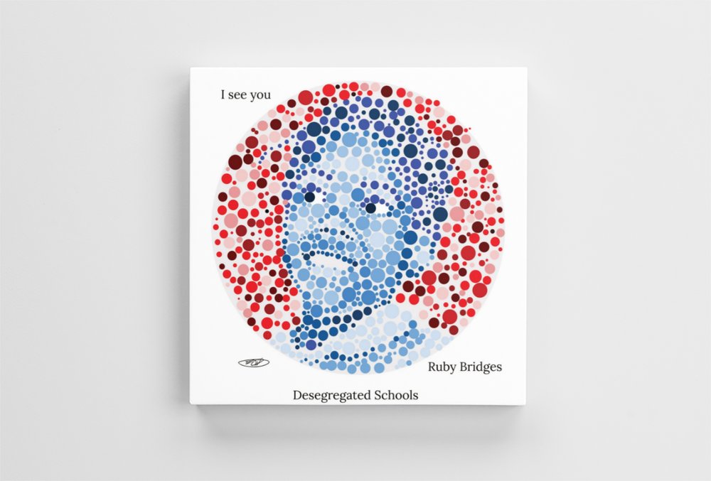a 12' x 12" canvas print of a 6 year old Ruby Bridges portrait.