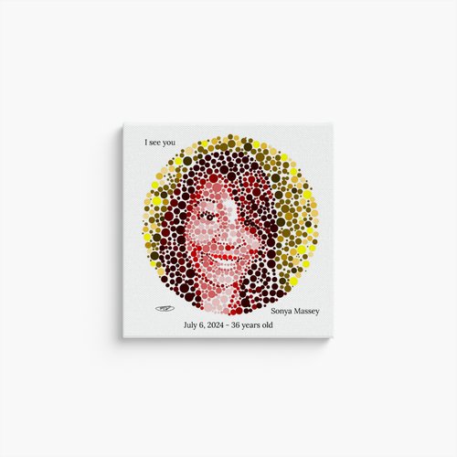 a 12' x 12" canvas print of Sonya Massey portrait